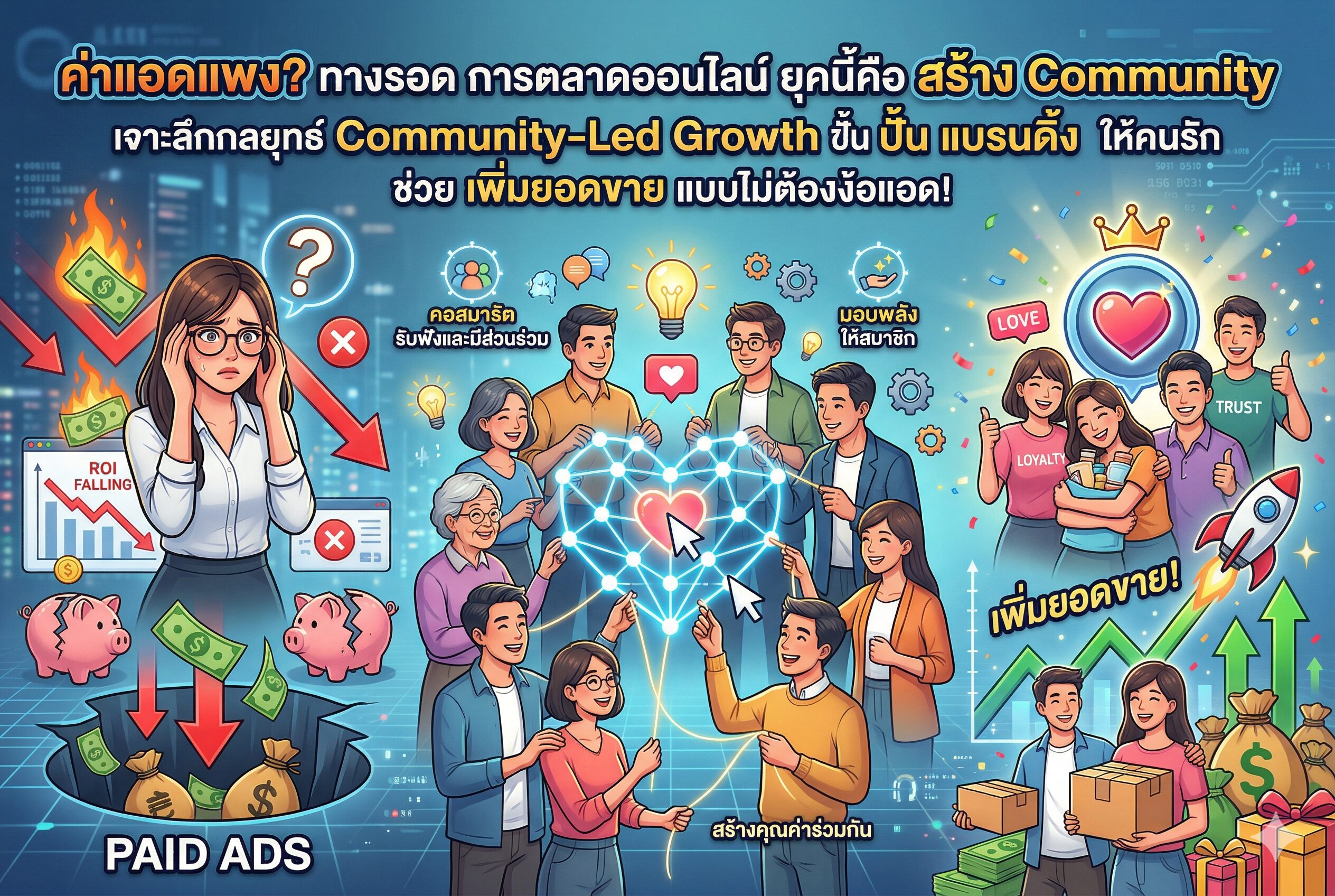 วันนี้ DigitalD2M จะพาคุณมาหา “ทางรอด” ที่ยั่งยืนที่สุด นั่นคือกลยุทธ์ “Community-Led Growth (CLG) หรือ การเติบโตด้วยพลังคอมมูนิตี้” เราจะมาฉีกตำราการ แบรนดิ้ง แบบเดิมๆ แล้วมาดูกันว่าคุณจะสามารถ สร้าง Community ให้คนมารวมตัวกัน พูดคุยกัน และช่วยคุณขายของ (Word of Mouth) เพื่อ เพิ่มยอดขาย แบบออร์แกนิกได้อย่างไร แบบเจาะลึกทุกสเต็ปครับ!