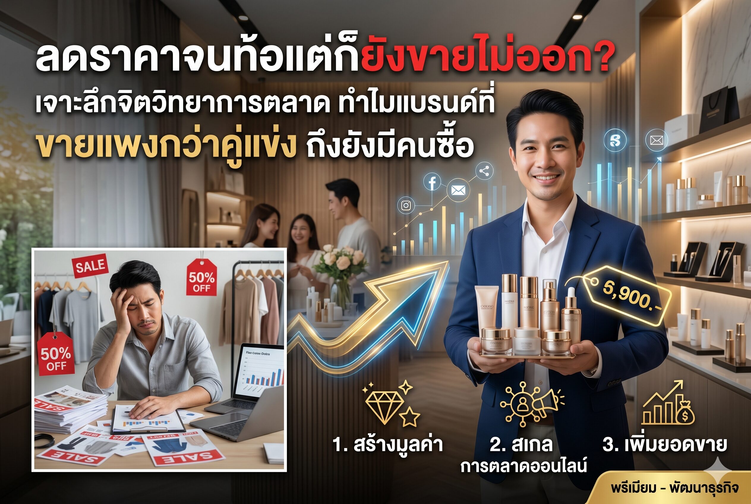 “ลดราคาสินค้าจนเหลือกำไรแค่ชิ้นละ 10 บาท จัดโปรโมชันส่งฟรีก็แล้ว แถมของแถมก็แล้ว แต่ทำไมลูกค้ายิงแอดทักมาก็ยังบ่นว่า ‘แพงจัง ขอคิดดูก่อนนะคะ’ … แต่พอหันไปมองแบรนด์คู่แข่งที่ขายของคล้ายๆ กัน เขาตั้งราคาแพงกว่าเราถึง 3 เท่าตัว ทำไมลูกค้าถึงยอมไปต่อคิวซื้อ ยอมรอพรีออเดอร์เป็นเดือนๆ โดยไม่บ่นเรื่องราคาสักคำ! สรุปว่าลูกค้าไทยชอบของถูกจริงๆ หรือเราพลาดอะไรไป?”